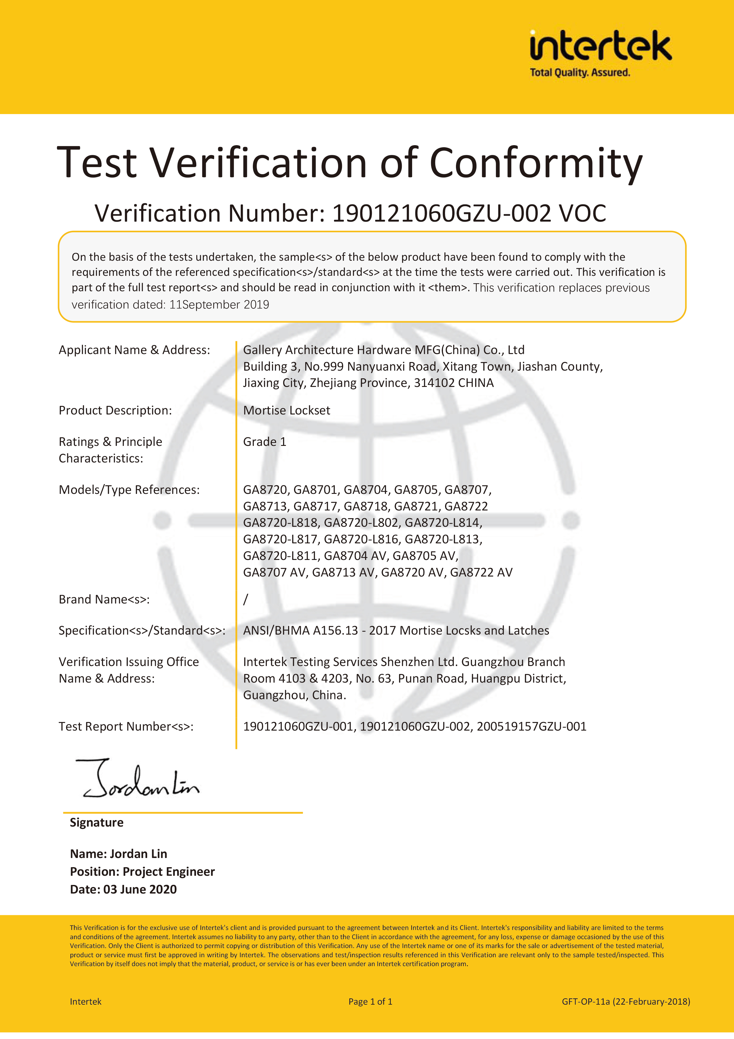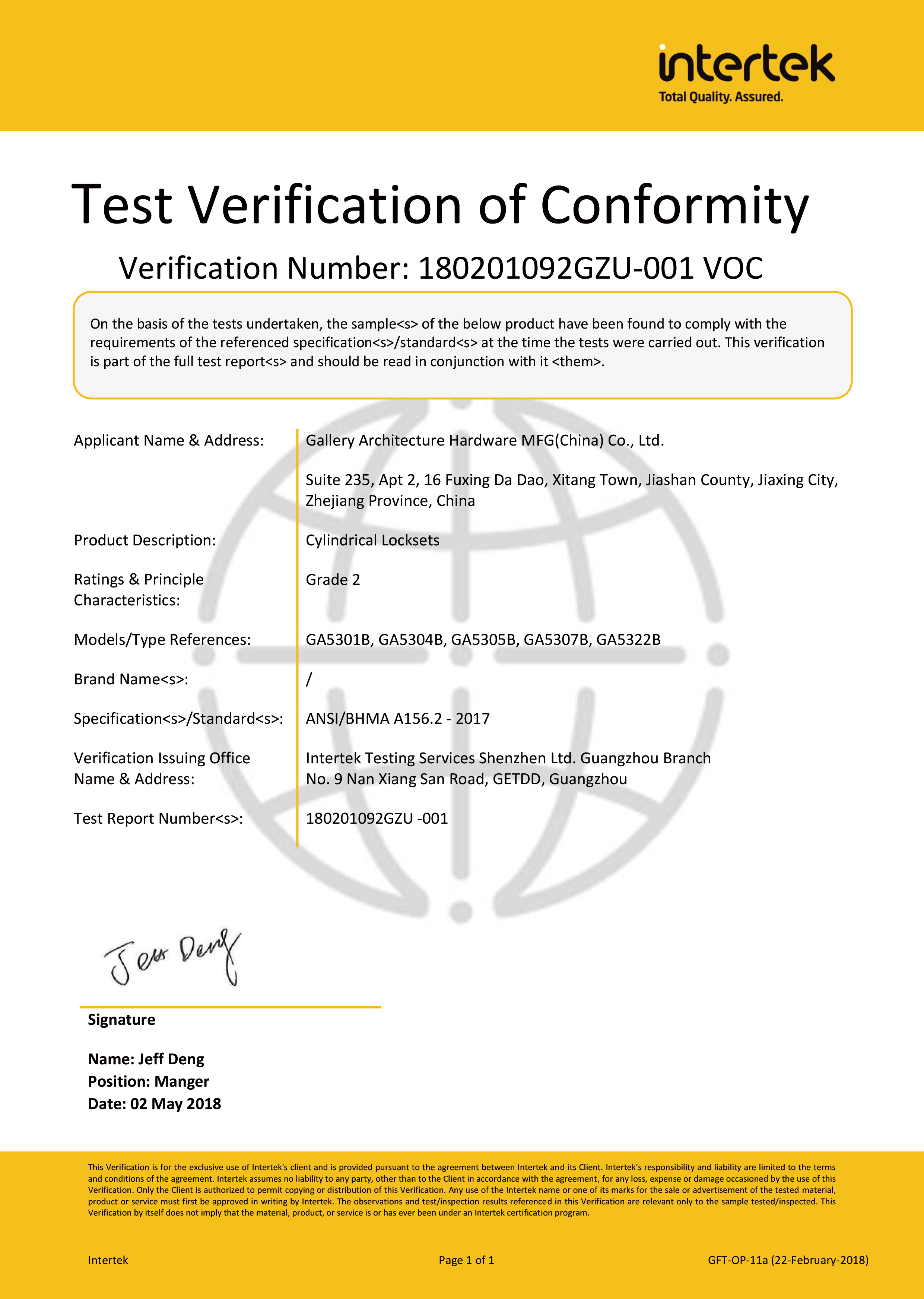 浙江堅迪五金制造有限公司始建于 1995 年。自 2003 開始,公司致力于高標準商業(yè)鎖的研發(fā)工作,并于 2006 及 2007 年,8700 插芯鎖系列獲得美國國家標準 ANSI A 156.13-2005 一級、ANSI A 156.2-2003 二級和美國 UL 10C3 小時防火測試認證。自 1998 年以來,公司不斷提升產(chǎn)品和客戶服務(wù)品質(zhì),并獲得了 ISO 9001 的認證。